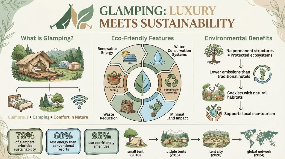 Glamping continues to grow as travelers seek unique, experience-based stays rather than traditional hotels or basic camping.